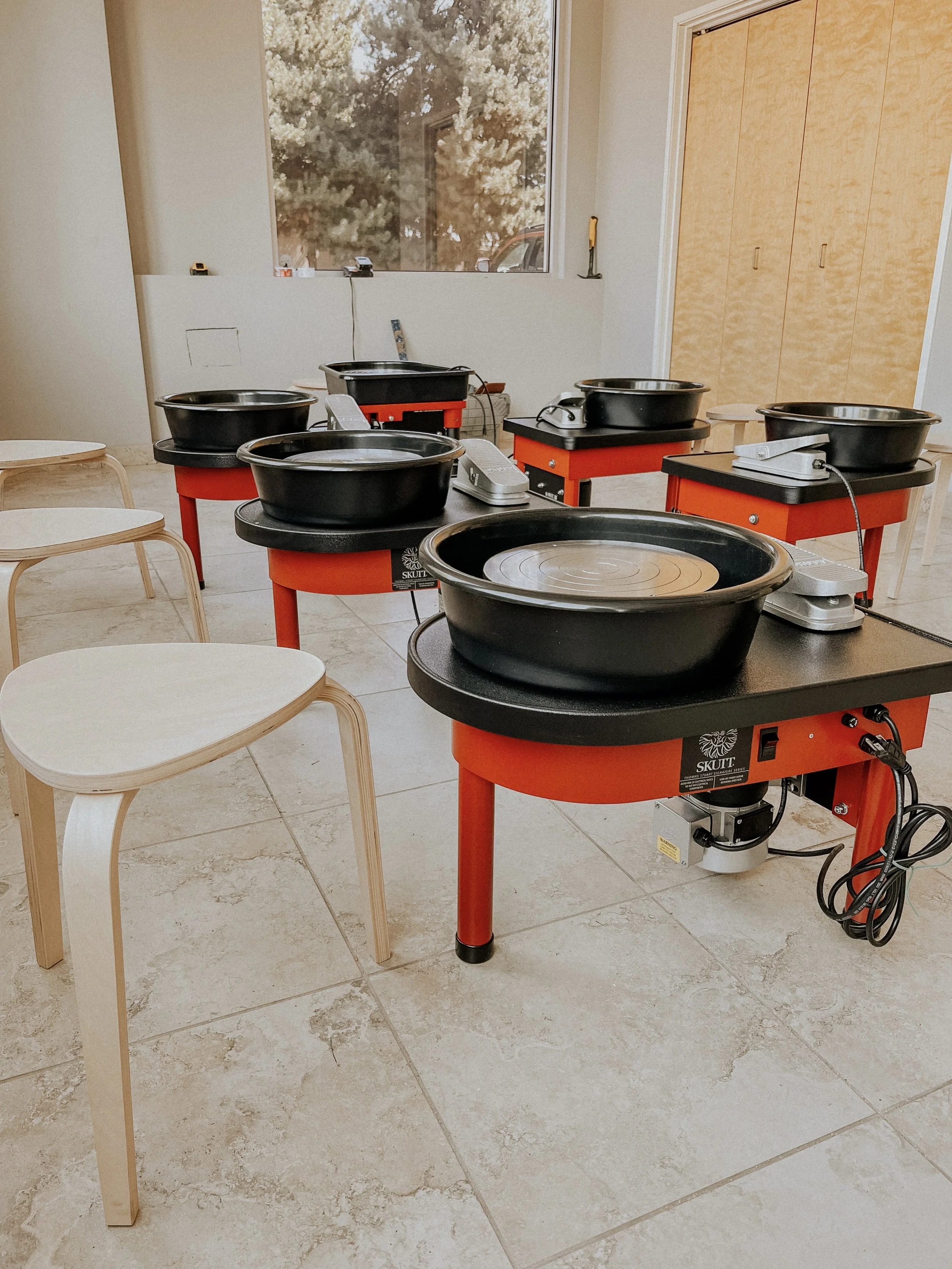 Sometimes it is just nice to clay at home. So if you would like to rent a wheel, we can get you spinning. For $100 a month and a deposit of $200, we will provide you with a Skutt potters wheel. Click HERE.